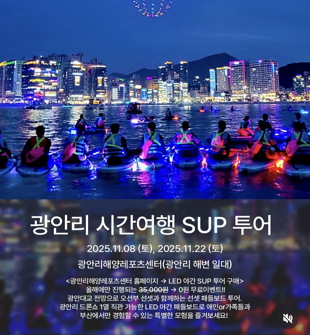 LED야간 SUP투어 무료이벤트중입니다~ 예약선착순(예약금입금)을 진행됩니다~ 드론 패들 SUP 투어 https://gwanganli.imweb.me/shop view/?idx=176